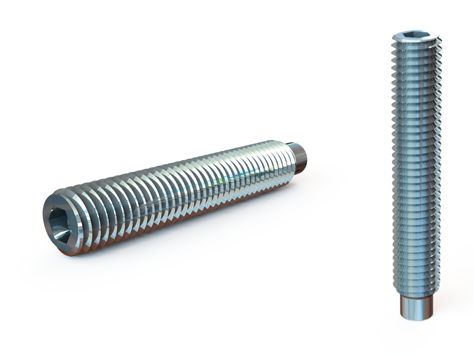 • DIN 914. Металлический стержень с коническим концом и резьбой на всю длину. Коническая форма торца обеспечивает надежную фиксацию деталей, упрощает проведение монтажных работ. Размерность резьбы – от М2 до М20.