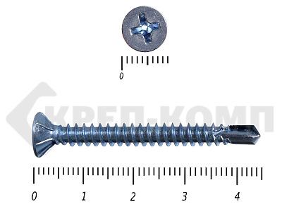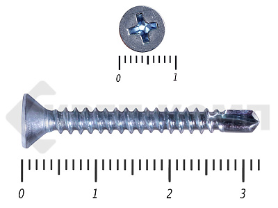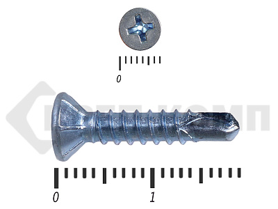Оцинкованные потайные саморезы со сверлом DIN 7504 P – имеют полную резьбу и сверло на кончике. Потайная головка при вкручивании входит в материал и не выступает на поверхности. Такими саморезами можно закрепить листовые отделочные материалы из пластика, металла, фанеры к металлическим конструкциям. Саморез может высверливать отверстие в углеродистой стали толщиной до 4мм.