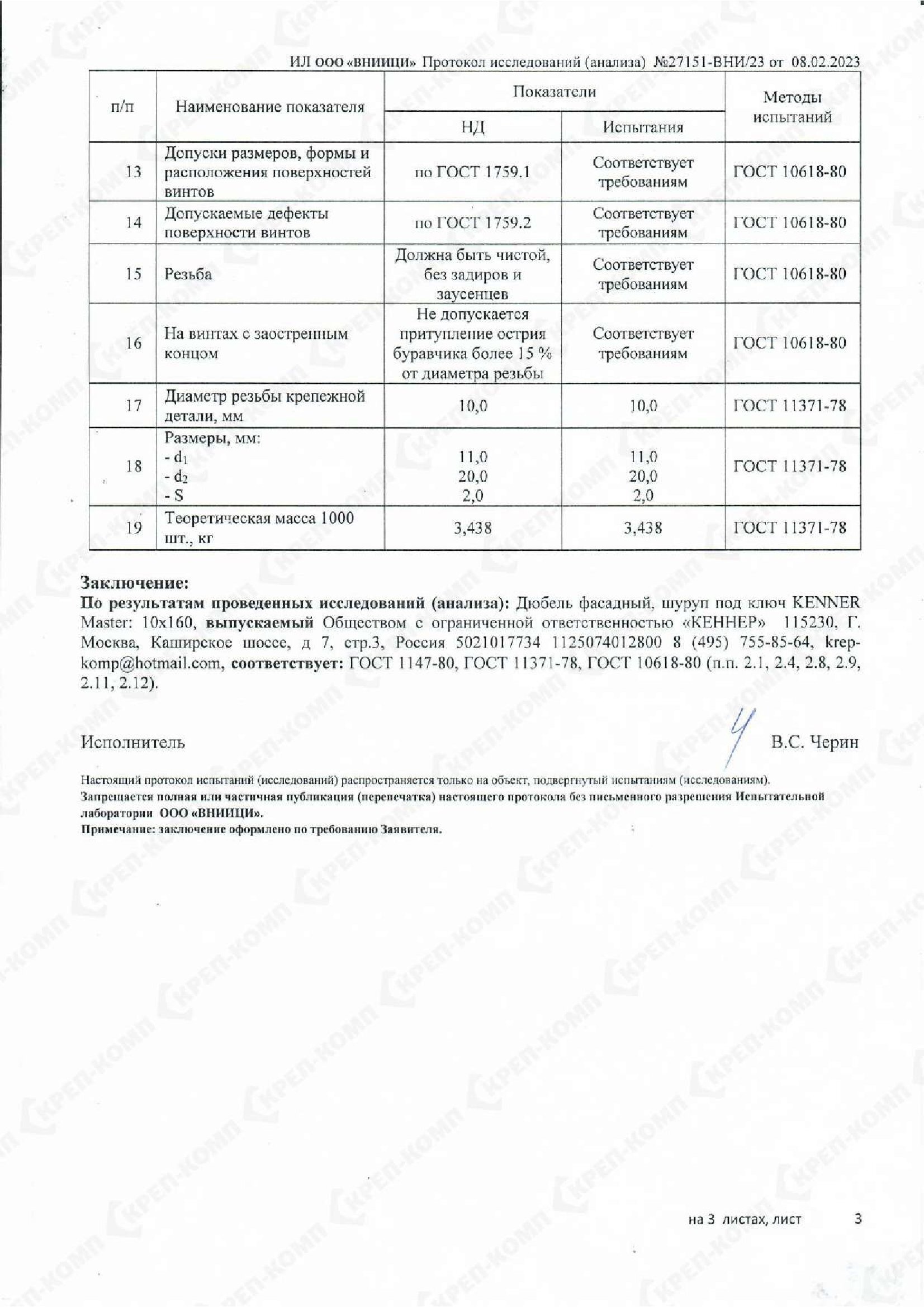 Скачать Дюбель фасадный, шуруп под ключ KENNER Master 10х160