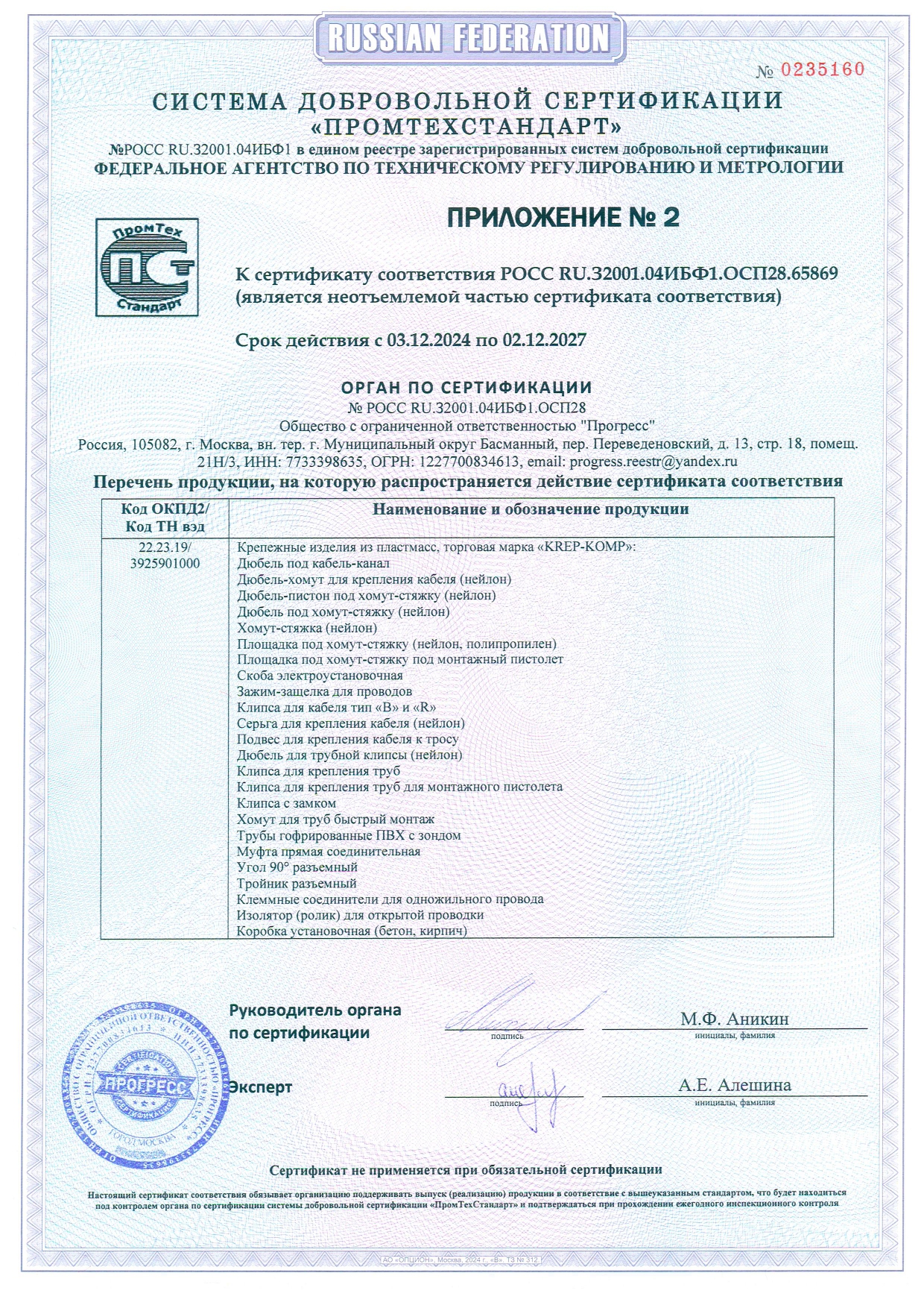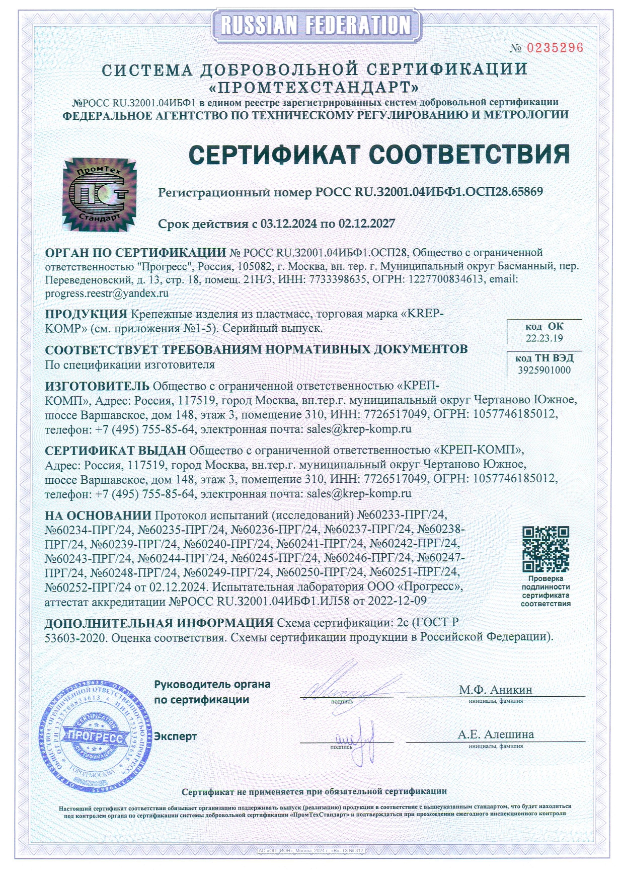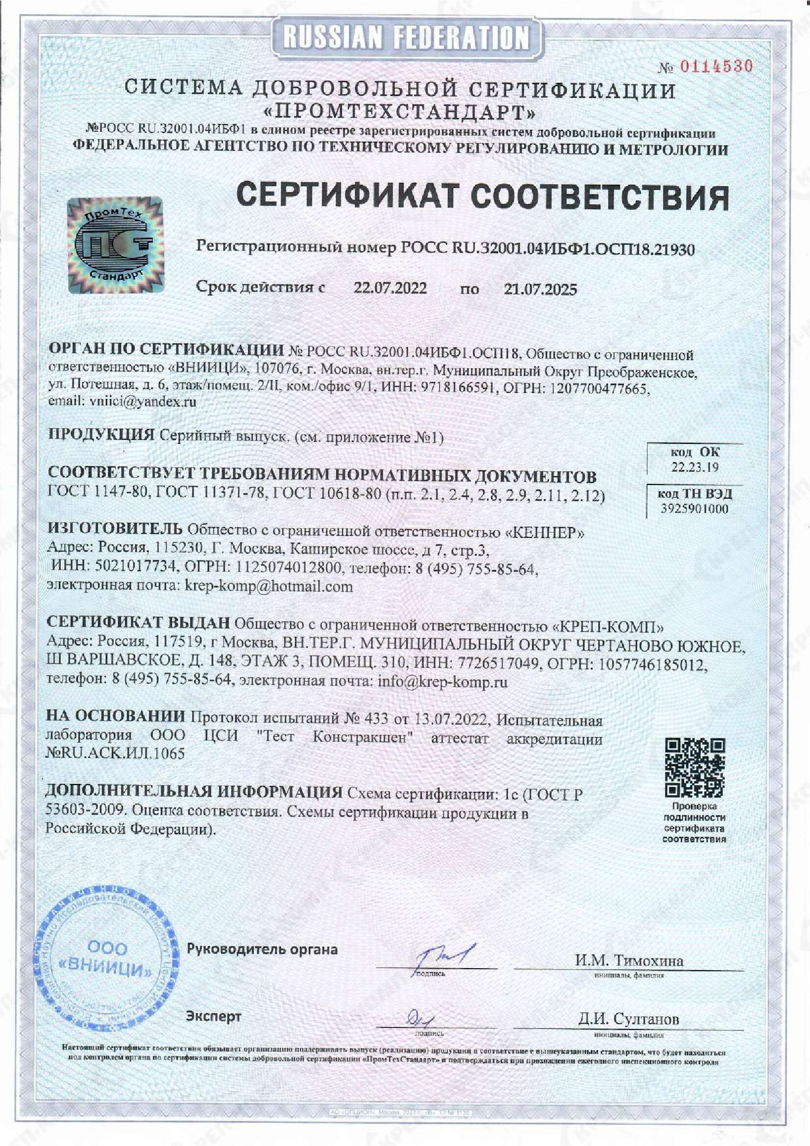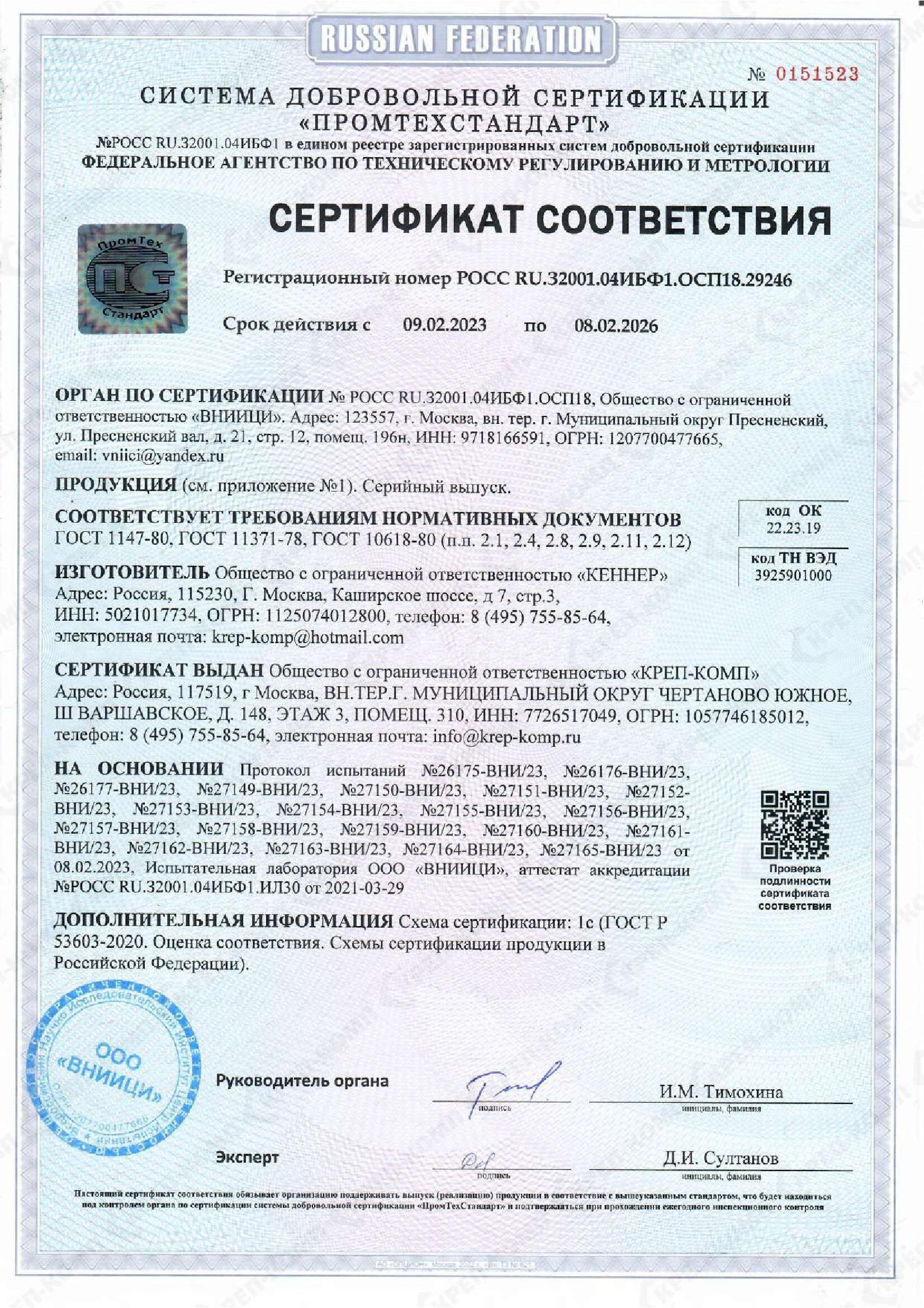 Скачать Сертификат соответствия ФДКП с прессшайбой