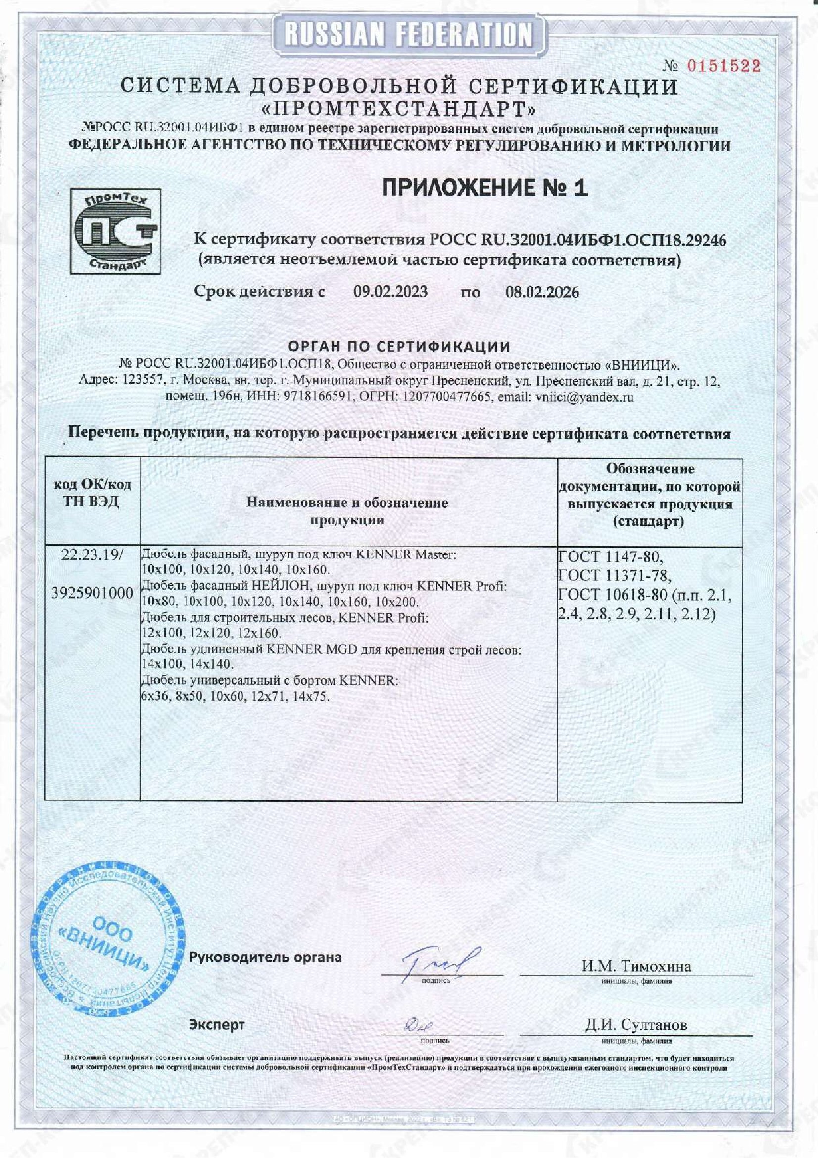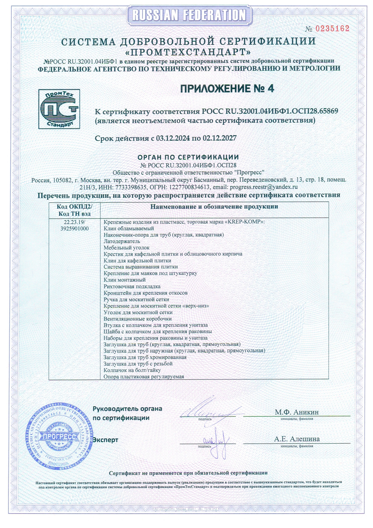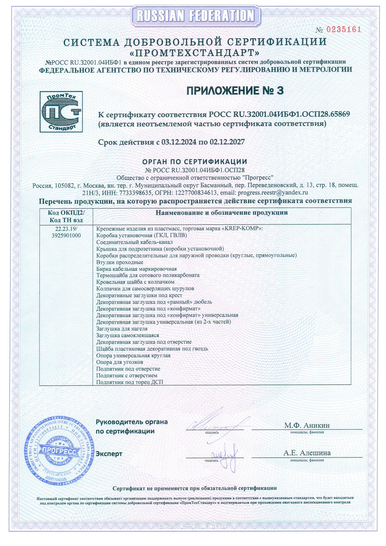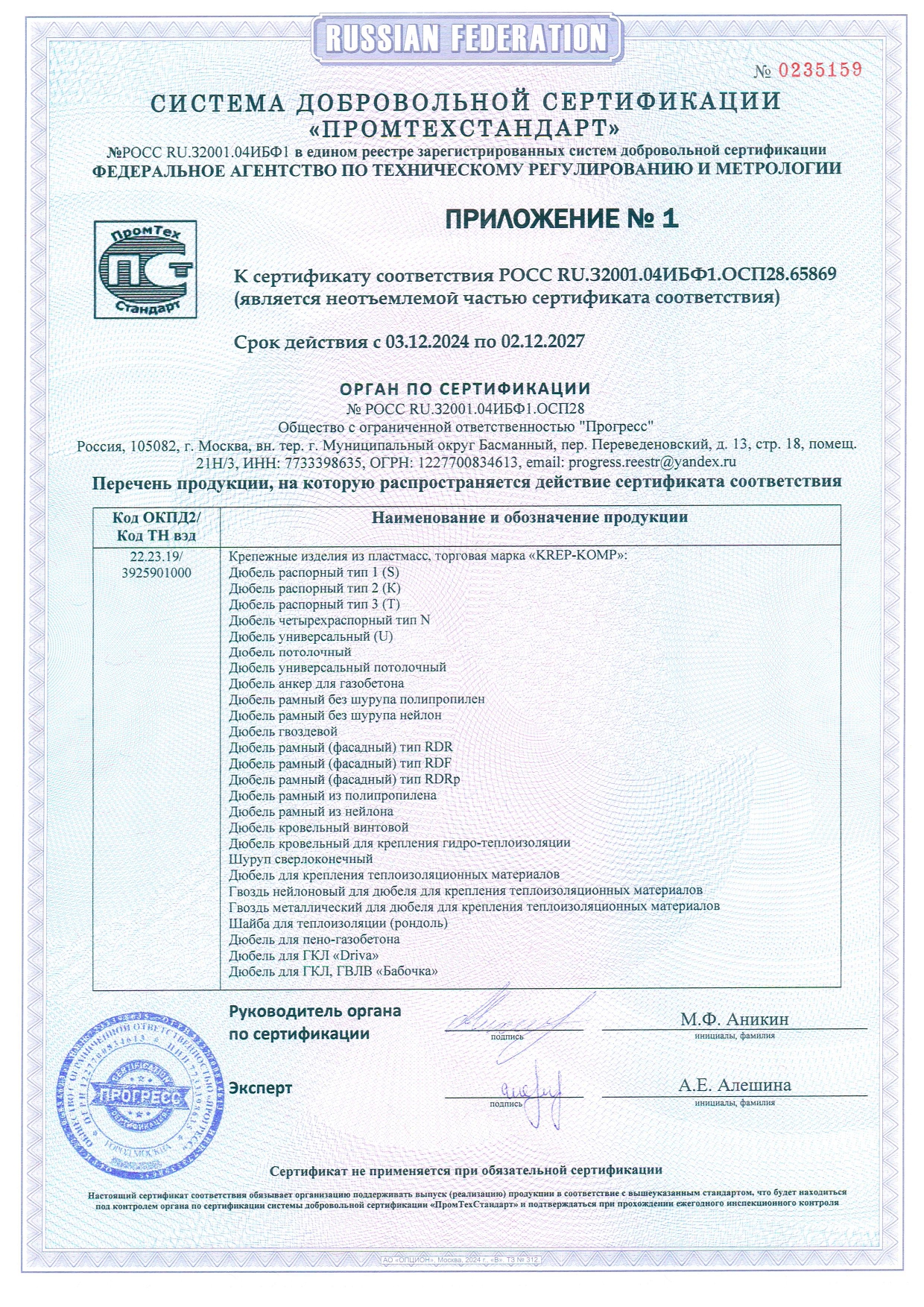 Скачать Сертификат соответствия ФДКП с прессшайбой