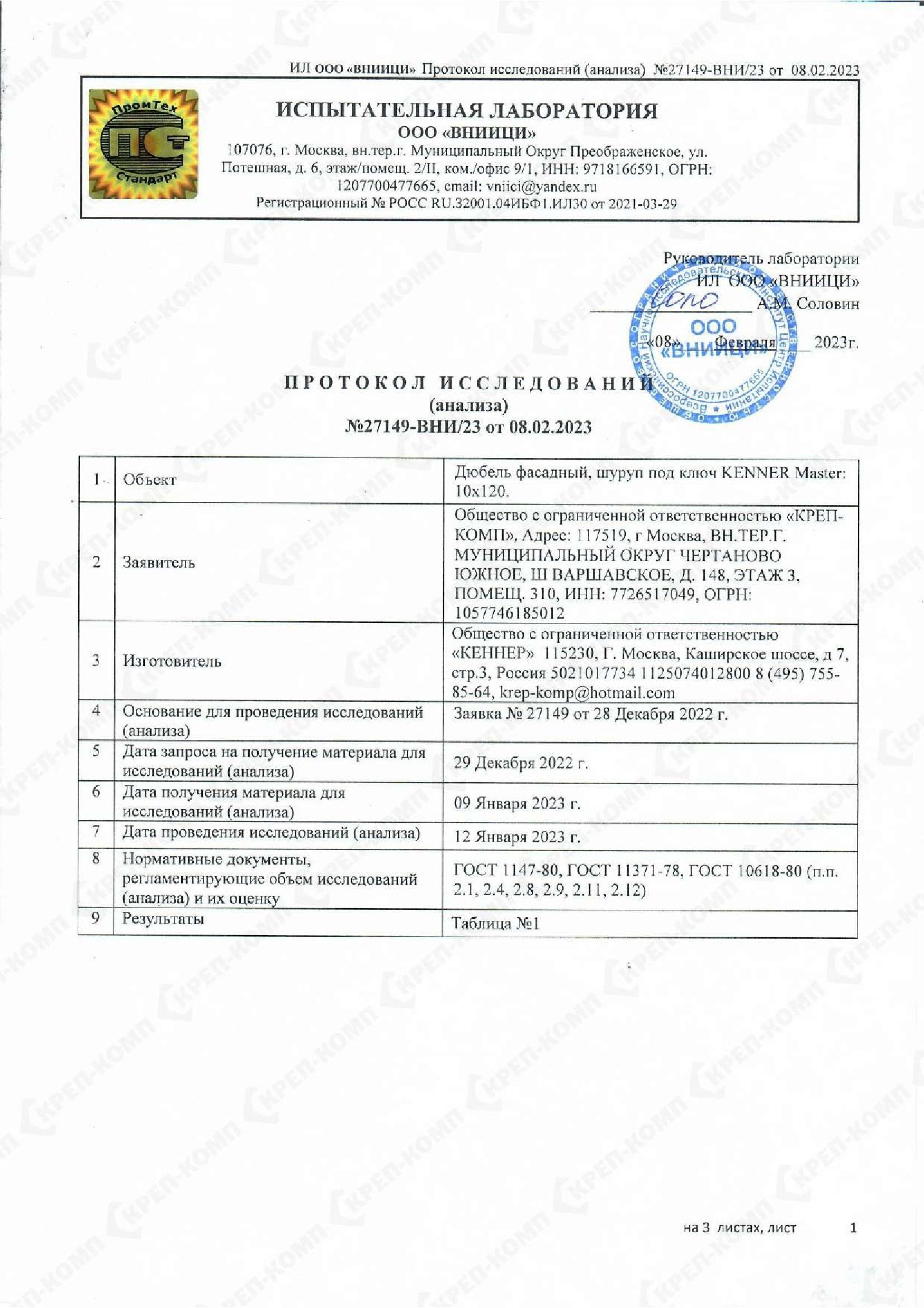 Скачать Дюбель фасадный, шуруп под ключ KENNER Master 10х120