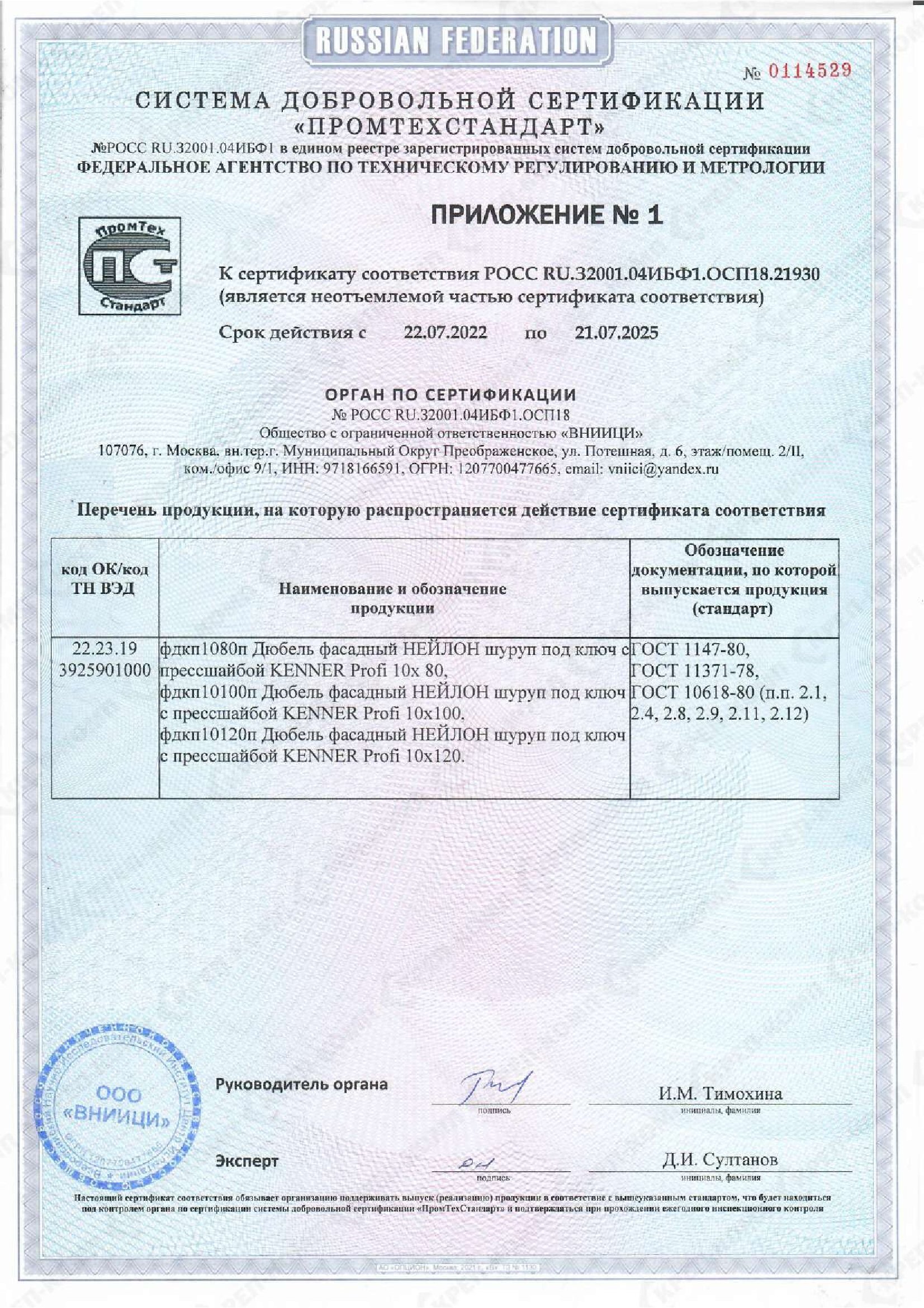 - Дюбель фасадный НЕЙЛОН, шуруп под ключ KENNER Profi 10х80