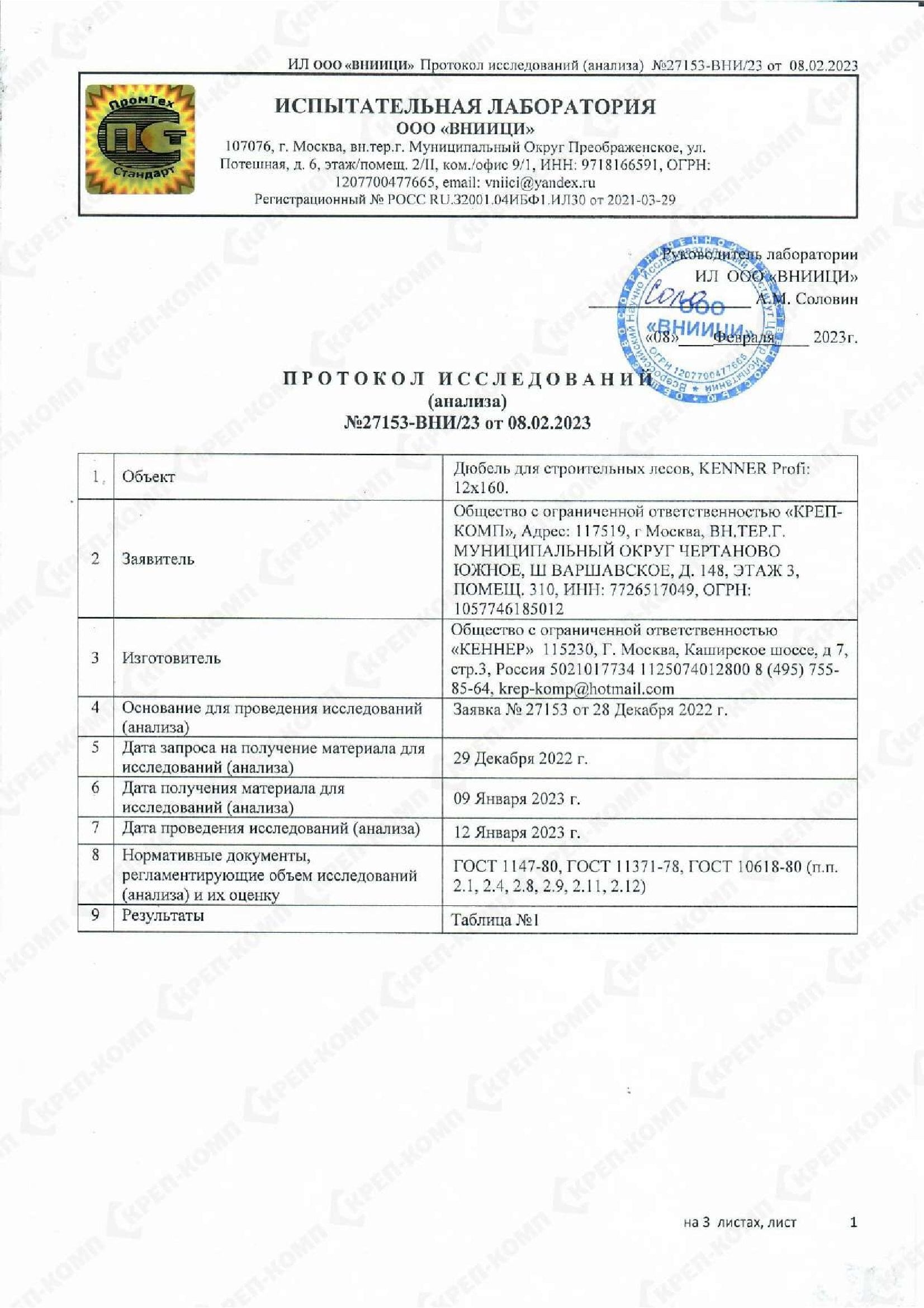 Скачать Дюбель для строительных лесов, KENNER Profi 12х160