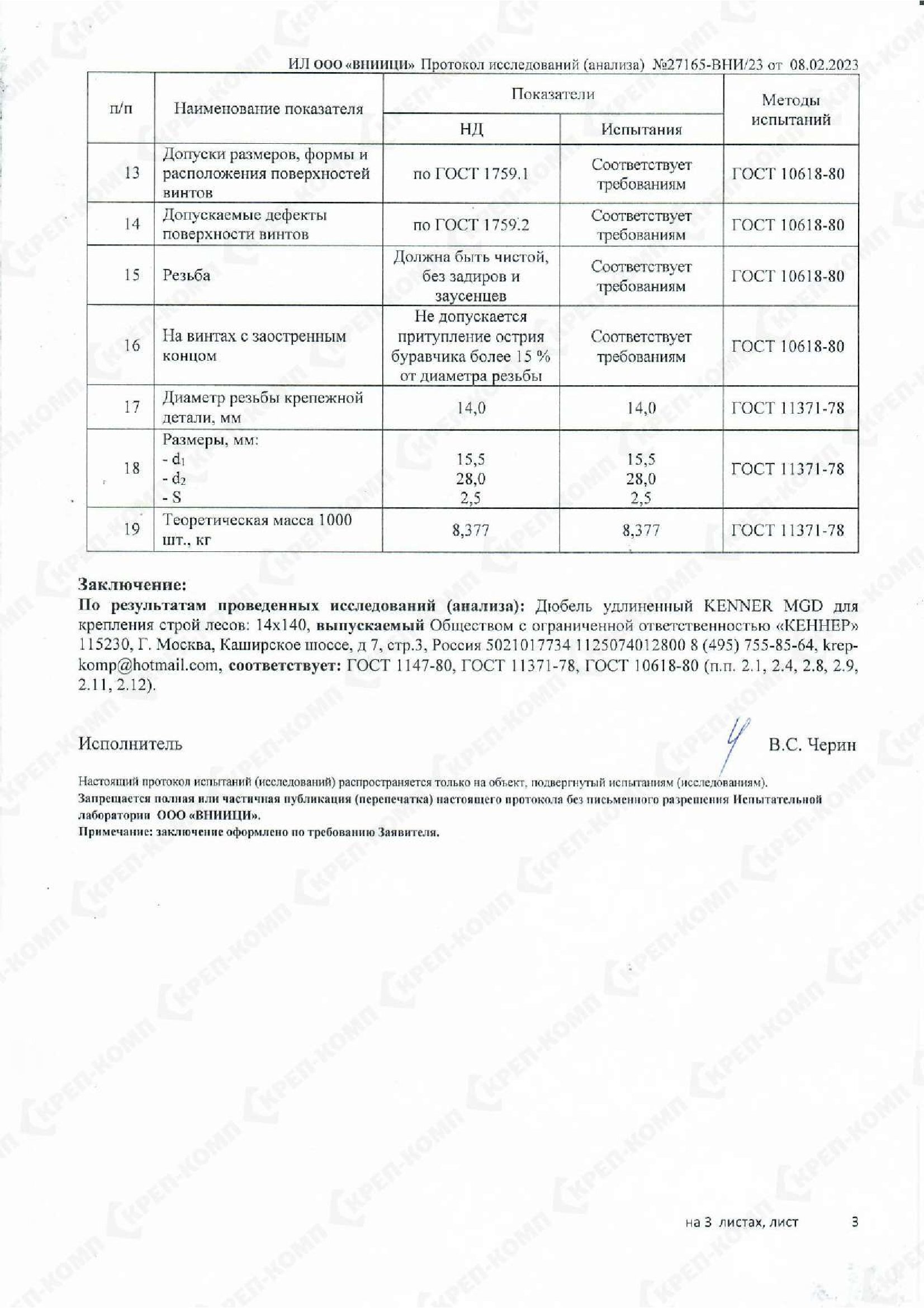 Скачать Дюбель удлиненный KENNER MGD для крепления строй лесов 14х140