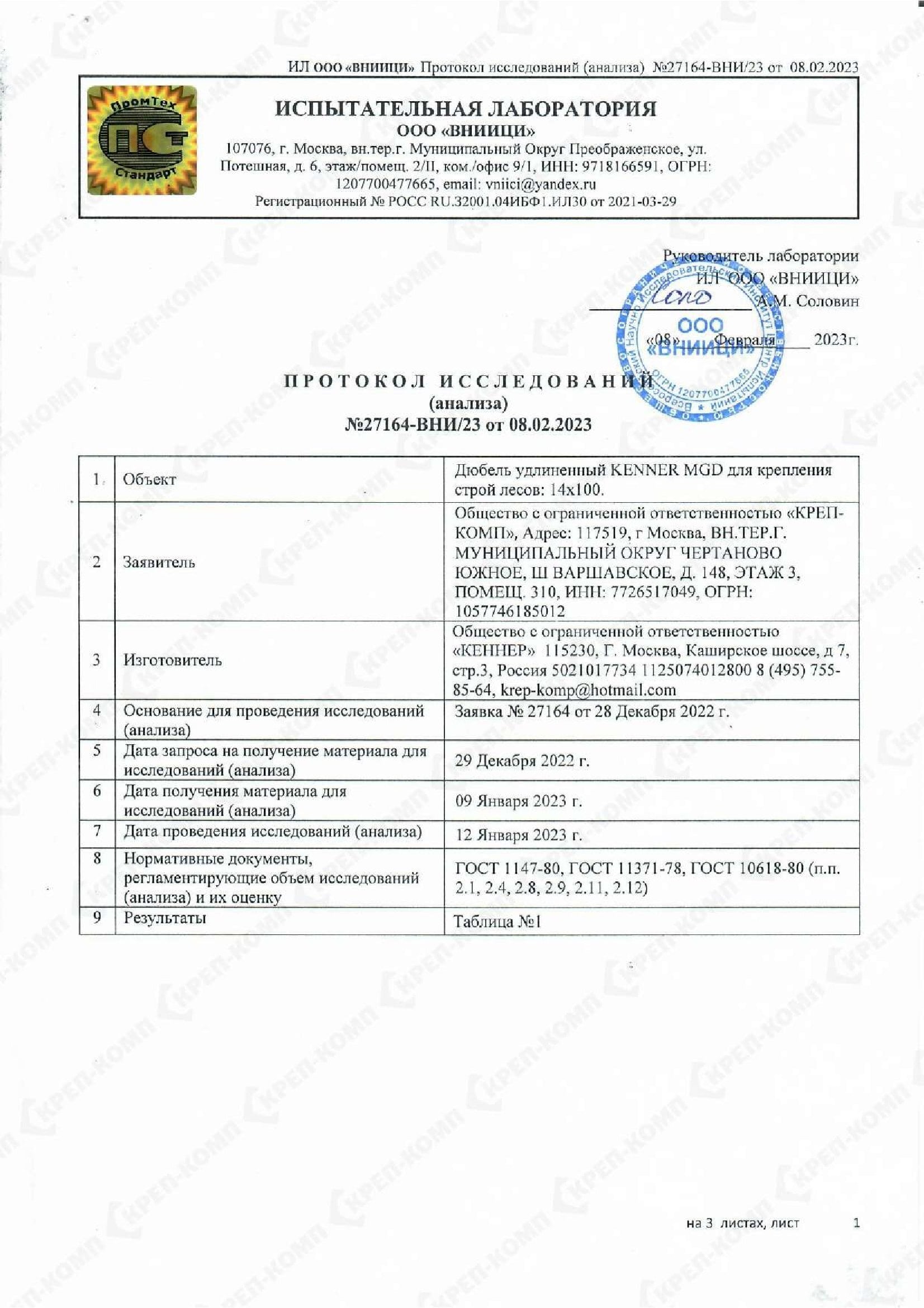- Дюбель удлиненный KENNER MGD для крепления строй лесов 14х140