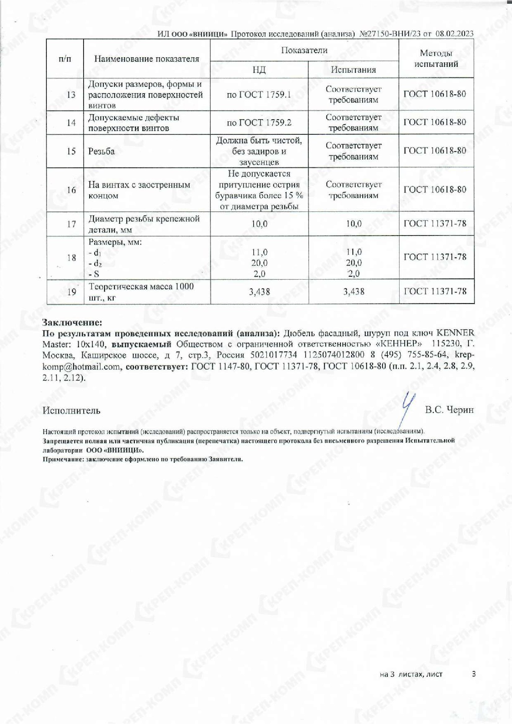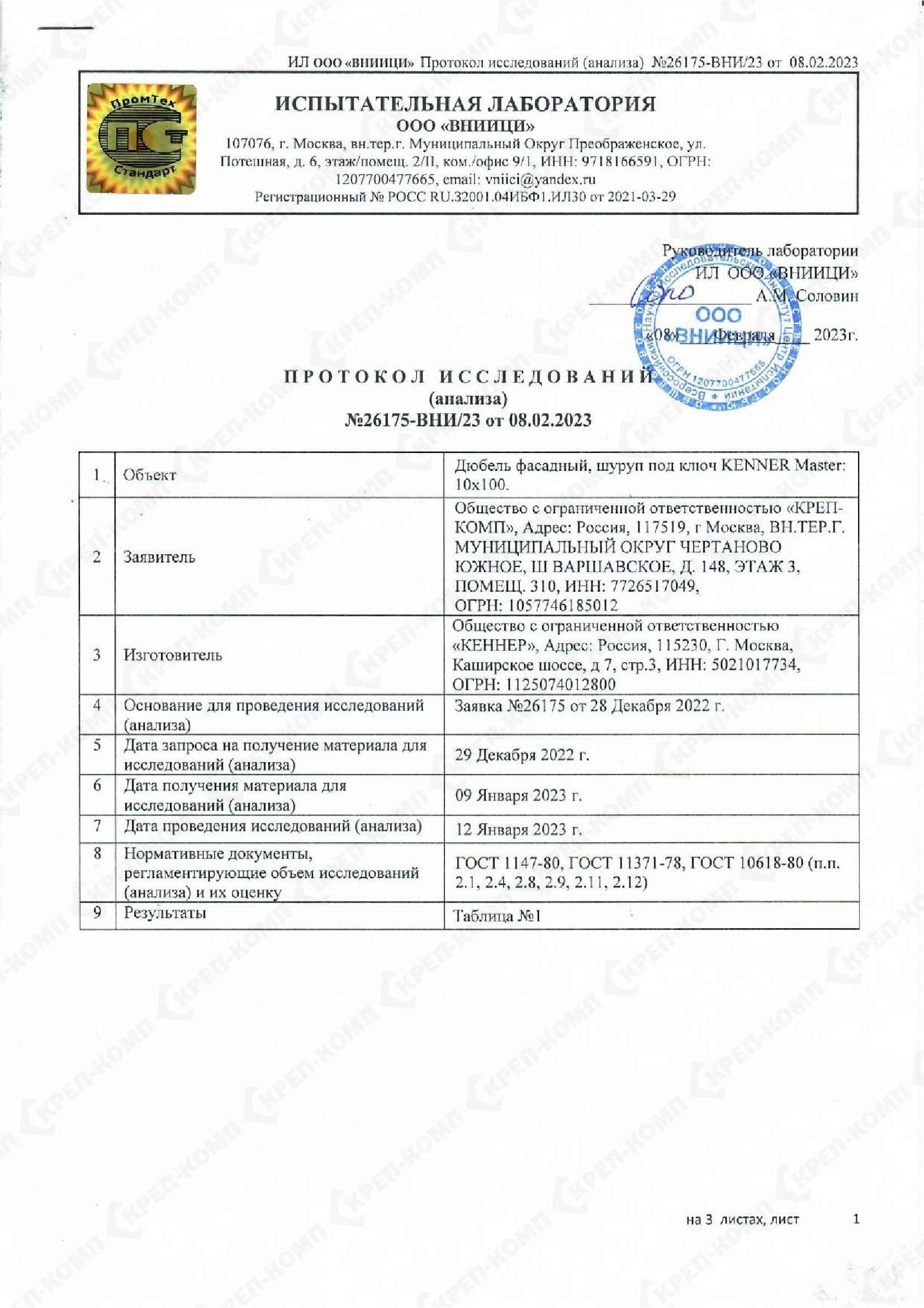 Скачать Дюбель фасадный, шуруп под ключ KENNER Master 10х100