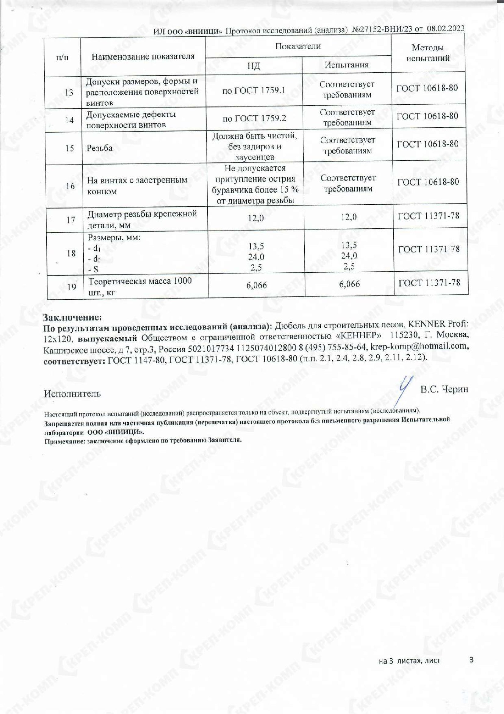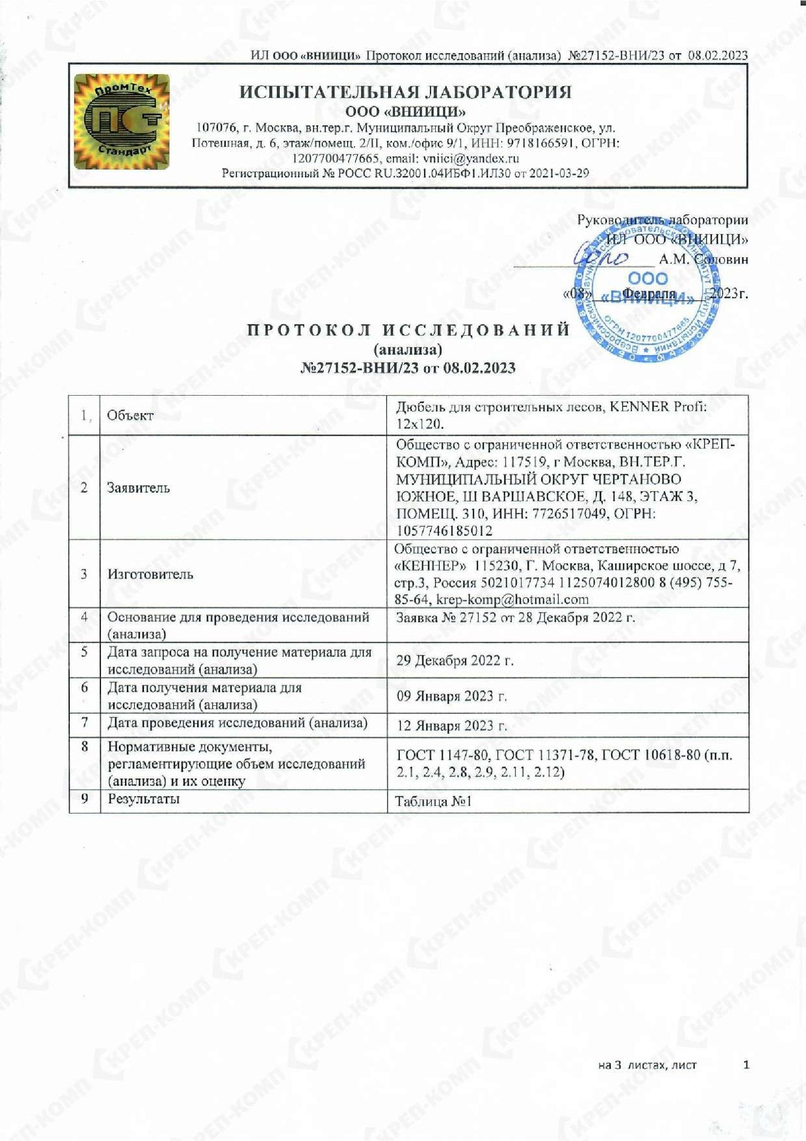 - Дюбель для строительных лесов, KENNER Profi 12х120
