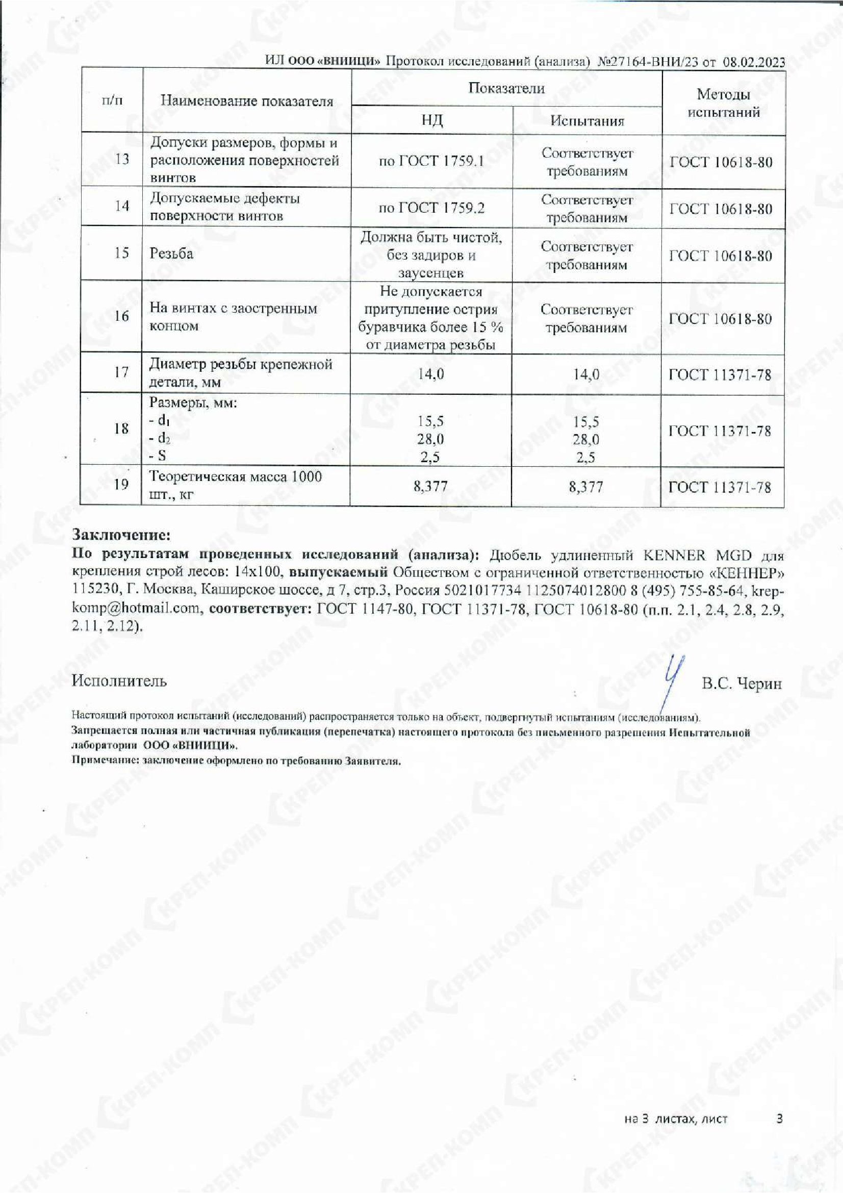 Скачать Дюбель удлиненный KENNER MGD для крепления строй лесов 14х100